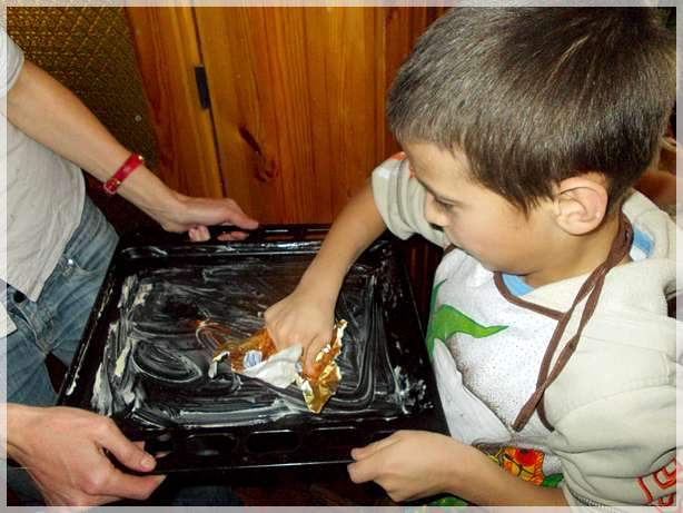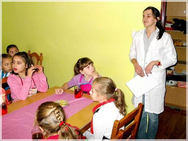 Zostali�my podzieleni na cztery grupy. Ka�da z grup siedzia�a przy swoim stoliku. Pani Ania dochodzi�a do ka�dej grupy, cierpliwie pokazywa�a, obja�nia�a, donosi�a odpowiednie produkty, s�u�y�a rad� i pomoc� ka�demu z nas. Oczywi�cie swoj� prac� rozpocz�li�my od ubrania fartuszk�w i dok�adnego umycia r�k.