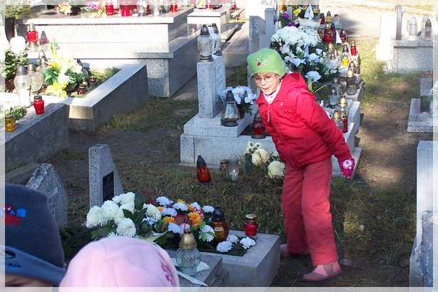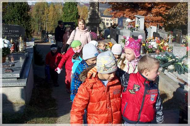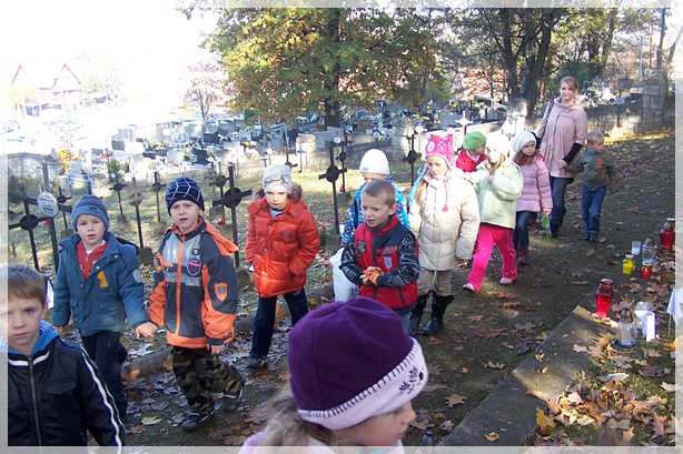 Okres Święta Zmarłych, to odpowiedni moment na wspomnienie o tych, którzy odeszli od nas, czas na rozmowę dotyczącą szacunku dla zmarłych i o odpowiednim zachowaniu się w takim miejscu, jakim jest cmentarz. W Dzień Zaduszny udaliśmy się całą grupą pod pomnik „Poległym za Wolność 1914–1920” przy ul. Orackiej oraz na pobliski cmentarz, gdzie zapaliliśmy znicze na grobach żołnierzy i małych dzieci oraz pomodliliśmy się za poległych, wspominając przy tym swoich bliskich zmarłych.