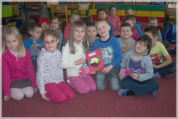 Przed Świętami Wielkanocnymi odwiedzili nas nasi przyjaciele z grupy integracyjnej z Miejskiego Przedszkola nr 2 w Bochni. Na początku naszego spotkania złożyliśmy sobie wzajemne życzenia świąteczne i przekazaliśmy wykonane przez siebie ozdoby wielkanocne oraz kartkę z życzeniami.